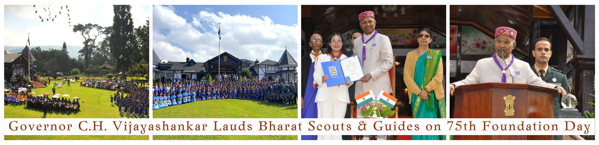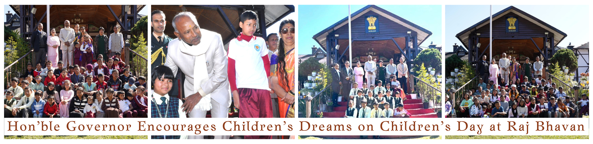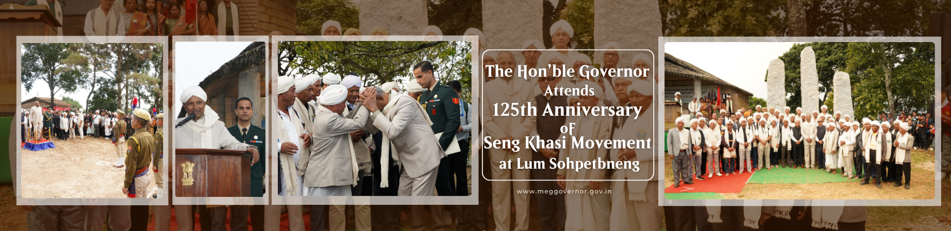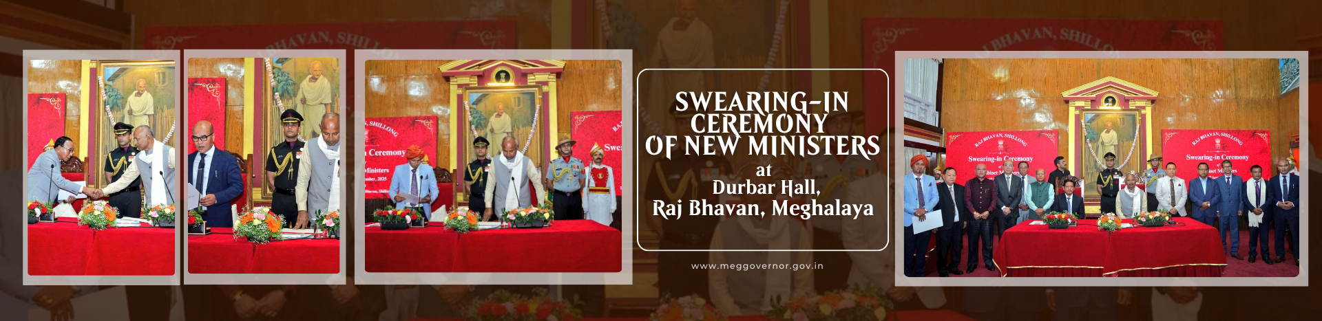 The Raj Bhawan, Meghalaya formerly known as Goverment House, is the official residence of the Governor of Meghalaya. It is located in the capital city of Shillong, Meghalaya. Spread over an area of 30.67 acres, the Raj Bhawan, Meghalaya consist of three blocks, namely, Main block, Kitchen Garden and Staff Quarter. The compound is surrounded with green lawns, flowers beds, trees, water fountain and Monoliths (Mawbynna) which add traditional and cultural value to the indegineous local people.