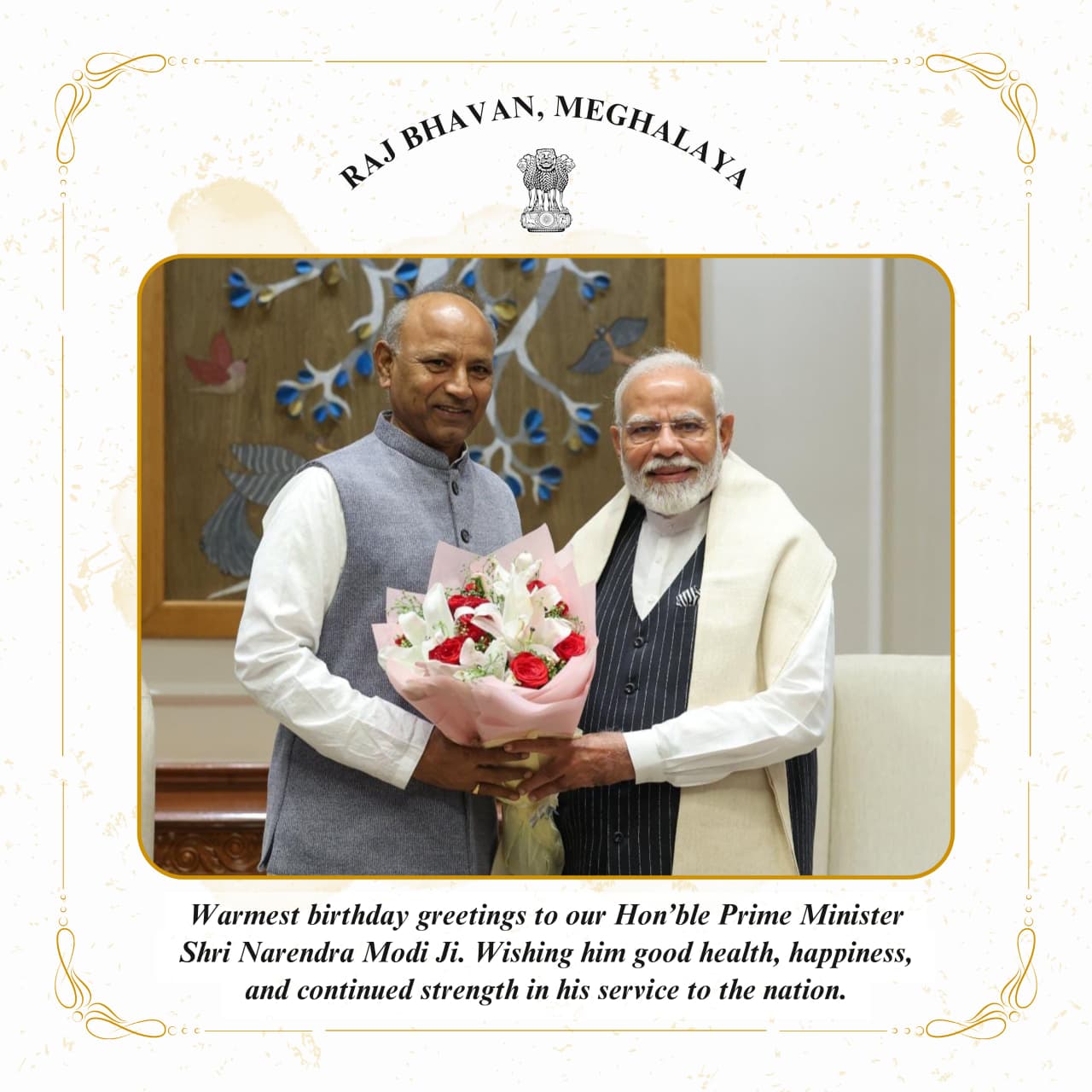 The Hon'ble Governor of Meghalaya Shri C.H.Vijayashankar and Raj Bhavan Shillong extend heartfelt wishes to Hon’ble Prime Minister Shri Narendra Modi Ji on his birthday. May his unwavering commitment to the ideals of Viksit Bharat 2047 continue to inspire millions.